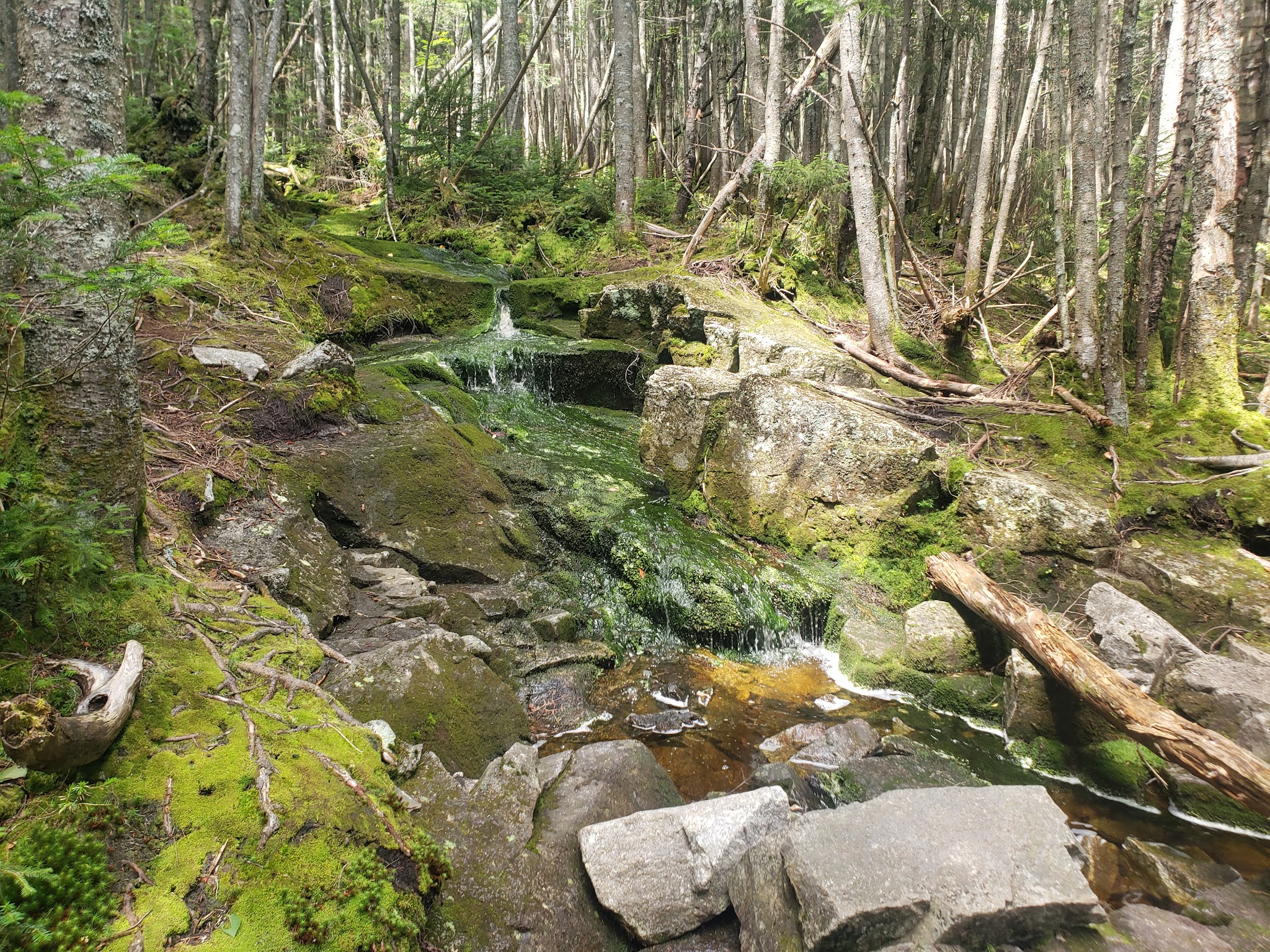 The most dangerous descent on the whole trail was climbing down from Moosilauke. Everything was wet and slippery, and it was a very steep angle. the picture above is taken looking down. There was a beautiful waterfall to the side.